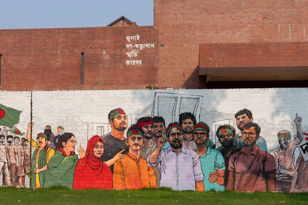 « Lorsque le tyran s’en va, les citoyens reprennent leurs droits et la “maison du peuple” nous appartient à nouveau », estime Mostofa Sarwar Farooki, qui détenait le portefeuille de la culture dans le gouvernement intérimaire emmené par le Prix Nobel de la paix Muhammad Yunus. Ce dernier, qui a assuré la transition durant dix-huit mois, jusqu’aux élections du 12 février, avait à cœur de mener ce projet. Quelque 8 millions d’euros y ont été consacrés et une poignée de personnes a travaillé nuit et jour pour que le chantier soit terminé en un temps record, à la veille du scrutin qui a porté le Parti nationaliste du Bangladesh au pouvoir.
