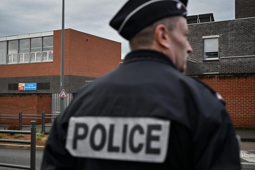 La principale du collège hurle et parvient à s’enfuir de son bureau après avoir déclenché l’alarme. L’adolescent, lui, se dirige vers une salle de classe bien précise. Sa professeure d’anglais y est tapie avec ses élèves et fixe la porte qu’elle vient de barricader, sur laquelle des coups s’abattent violemment. « On est dans la pénombre. Je leur avais dit “pas un bruit, ce n’est pas un exercice”, donc les élèves sont extrêmement calmes, raconte-t-elle aux policiers deux heures plus tard. Je vois trois jeunes filles la main sur la bouche, elles pleurent. On ne respire plus. A chaque coup je me disais, la porte va tomber. » Les policiers pénètrent dans l’établissement quelques minutes plus tard et maîtrisent le collégien de 15 ans, alors qu’il est en train de poursuivre un agent de maintenance, une lame de 23 centimètres à la main.