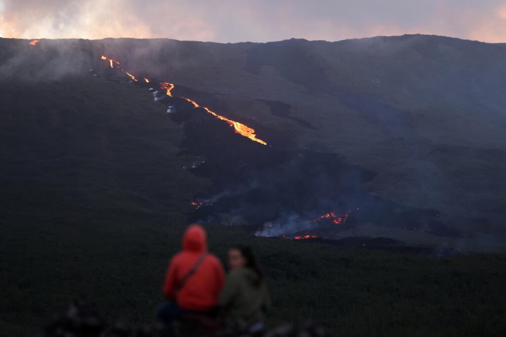 La jeune femme décrit, émerveillée, les « impressionnantes » projections de lave, les coulées avec variation d’orange « grandioses » bien marquées dans la nuit, et plus encore le « halo rouge » sous ce « ciel étoilé ». « C’est dingue, cela donne des frissons. C’est indescriptible », s’enthousiasme-t-elle, disant ne « plus trouver de superlatifs ».