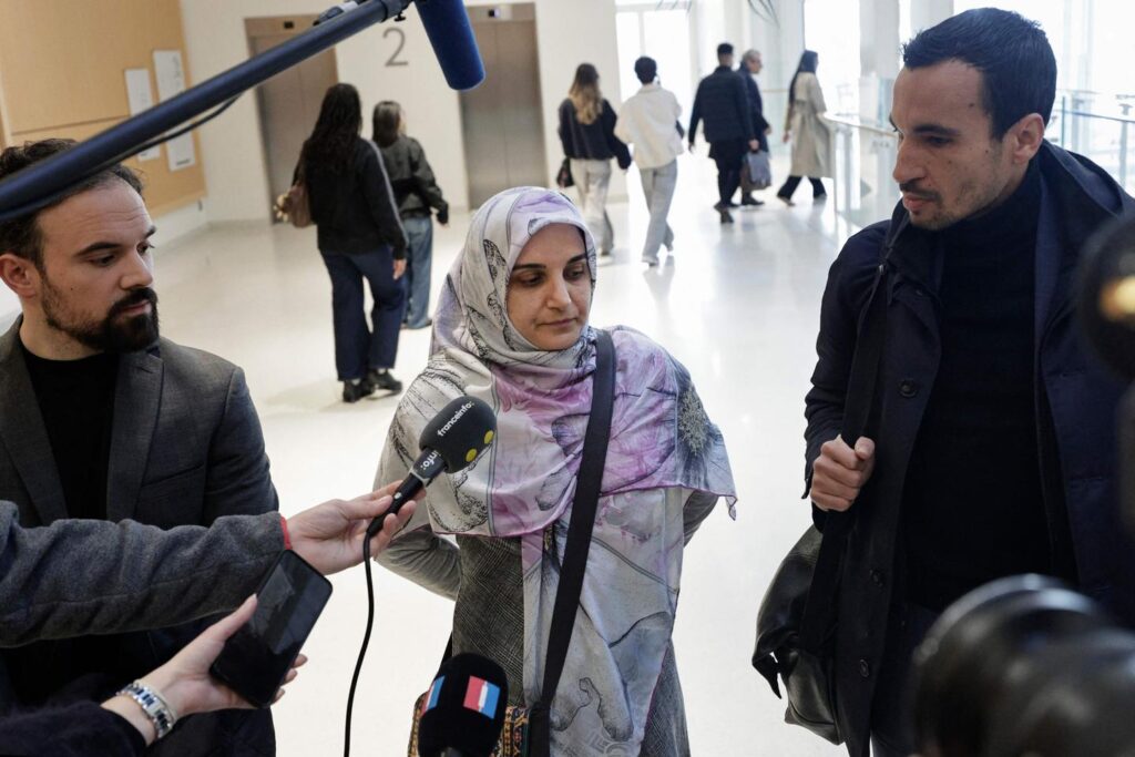 L’Iranienne Mahdieh Esfandiari entourée de ses avocats, au Palais de justice de Paris le 13 janvier 2026.