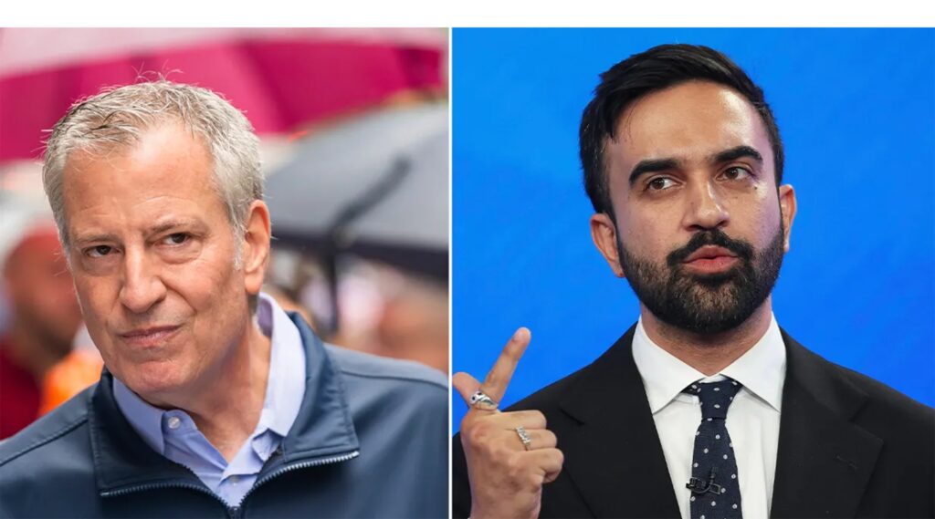 Former NYC Mayor Bill de Blasio, left, and Democratic mayoral candidate Zohran Mamdani. ( Gotham/GC Images; Yuki Iwamura-Pool/Getty Images / Getty Images)