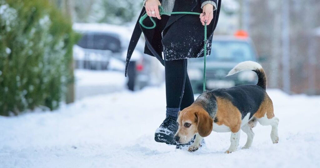 They might shiver, whine, refuse to move, lift their paws, seek warmth or appear disoriented. If you notice any of these symptoms, you need to get your dog home and warm them up safely.
