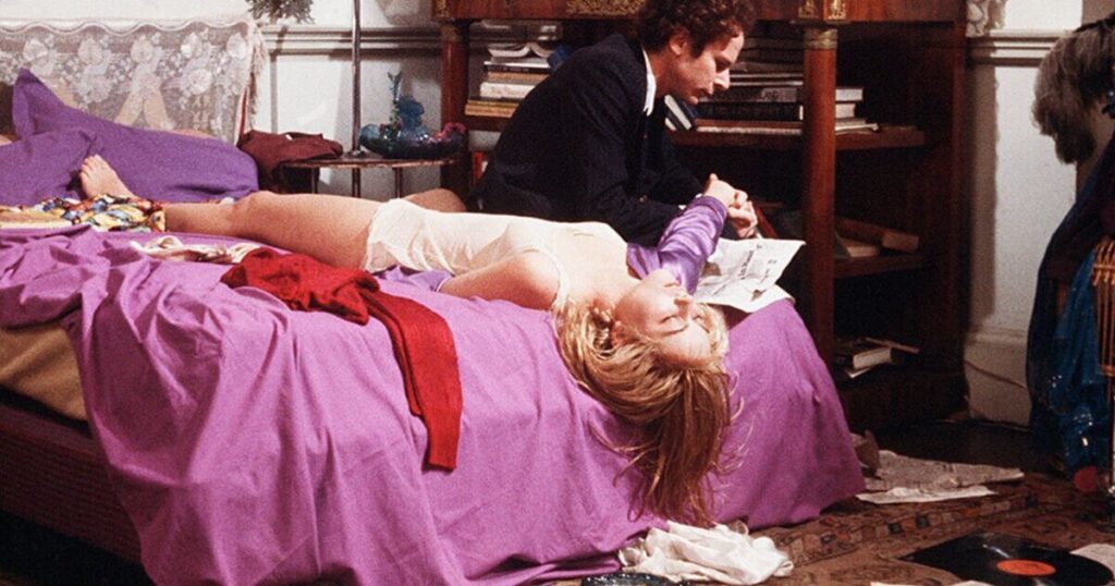 Céline and Julie Go Boating (1974) is a French film co-written and directed by Jacques Rivette. Its synopsis reads: « When Celine (Juliet Berto) goes traipsing across a Parisian park, unwittingly dropping first a scarf, then other objects, Julie (Dominique Labourier) cannot help but follow her, picking up each item. So begins a fanciful relationship between the two, which soon sees Celine sharing Julie’s apartment and each of them playfully switching identities in their daily lives. As they increasingly indulge their fantasies, they find themselves trying to rescue a young girl from a supposedly haunted house. »