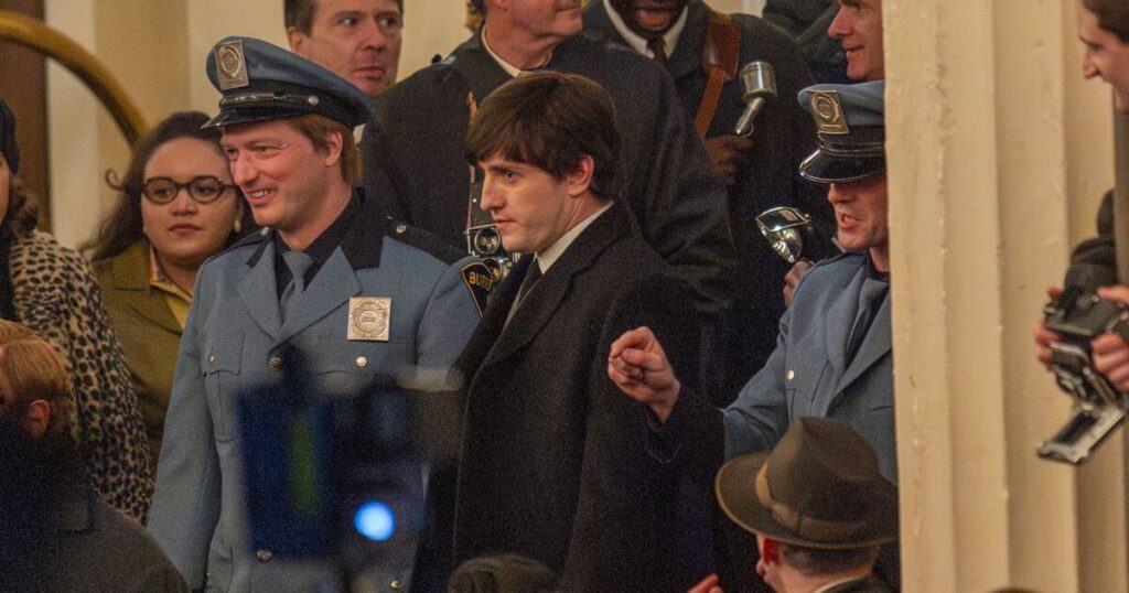 The dramatic scenes form part of director Sam Mendes’ ambitious four-film anthology charting the rise of The Beatles. First look snaps show the streets lined with screaming fans, police barricades and period details as scenes recreated the band’s legendary arrival outside The Plaza Hotel.