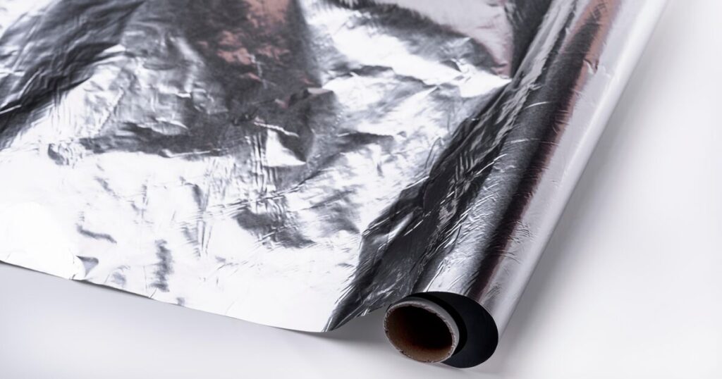 Kitchen foil, or tin foil or aluminium foil as it’s sometimes known, works by reflecting heat in the same way foil is used on spaceships.