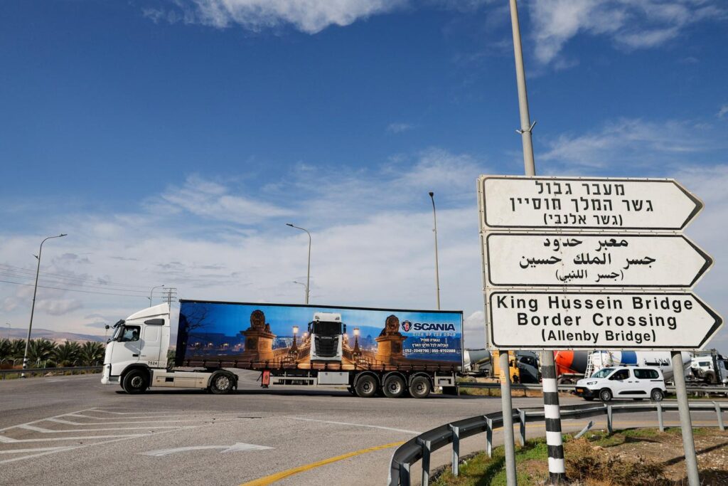 « Le point de passage d’Allenby était ouvert aujourd’hui et des camions circulent » à destination de la bande de Gaza, a déclaré un porte-parole du Cogat, l’organisme du ministère de la défense israélien chargé de superviser les affaires civiles dans les territoires palestiniens. Une source officielle palestinienne a confirmé sous couvert d’anonymat à l’AFP que le passage, pont du Roi-Hussein pour les Jordaniens, a été ouvert.