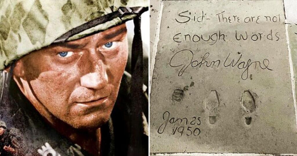 Among them are John Wayne’s boot prints and a fist, imprinted on January 25, 1950.