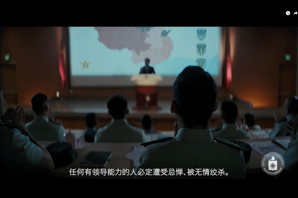 La vidéo, publiée sur la chaîne YouTube de la CIA, met en scène un officier chinois imaginaire qui décide de contacter l’agence de renseignement américaine après être arrivé à la conclusion que « la seule chose que les dirigeants protègent, ce sont leurs propres intérêts » et que « leur pouvoir repose sur d’innombrables mensonges ».