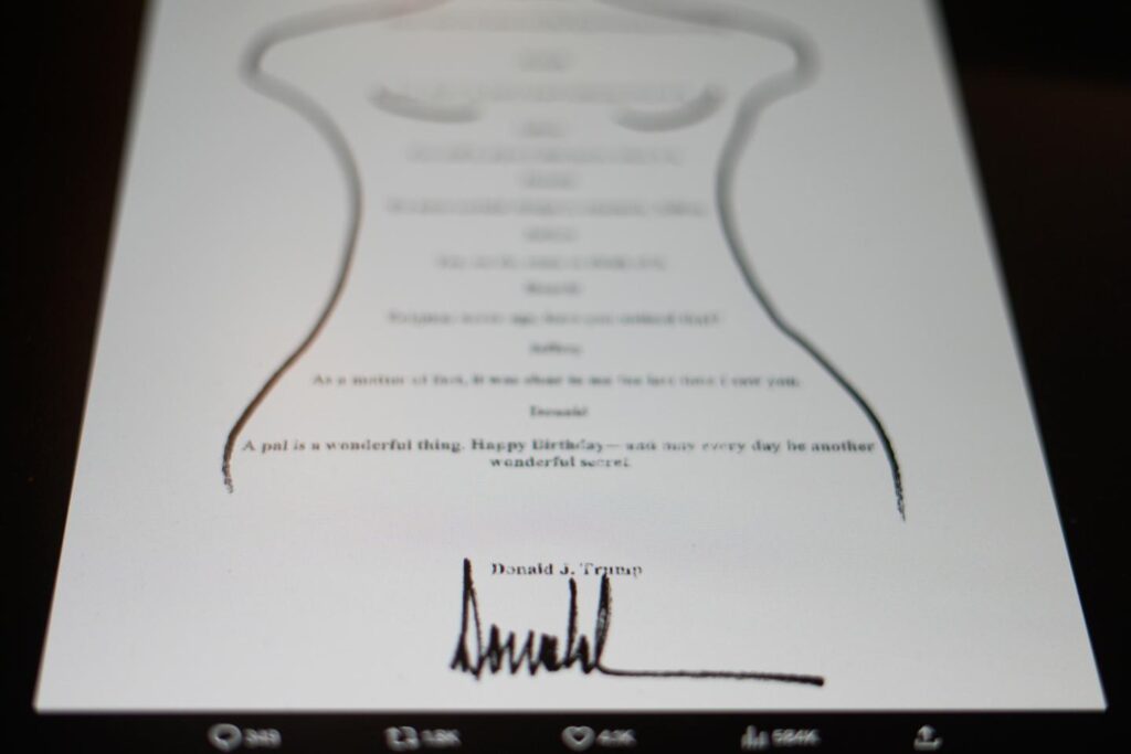 Le New York Times a toutefois publié lundi plusieurs lettres signées de Donald Trump et datant de la fin des années 1990 ou du début des années 2000, dont les signatures portent une ressemblance frappante avec celle figurant sur la lettre de 2003. Celle-ci fait apparaître une esquisse de buste féminin, avec un échange imaginaire entre Jeffrey Epstein et Donald Trump, à l’époque deux visages de la jet-set new-yorkaise. Une signature semblant être celle du futur président américain figure au pied du texte, à la place du pubis de la femme dessinée. « Joyeux anniversaire. Que chaque jour soit un autre merveilleux secret », conclut le texte dactylographié.