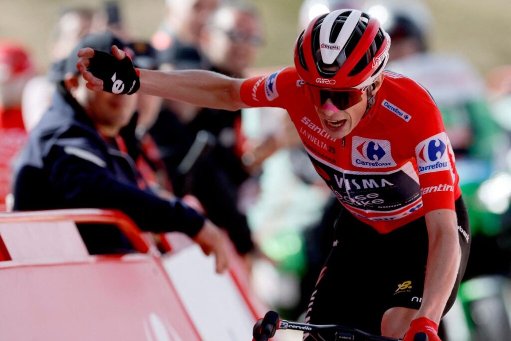 Joao Almeida a tenté le tout pour le tout pour essayer de lâcher Jonas Vingegaard dans l’ascension finale. Mais le Danois, d’abord calé dans sa roue, a résisté sans trembler. Puis l’Australien Jai Hindley, en quête de la 3e place, a pris la tête dans Bola del Mundo. Le Britannique Tom Pidcock et Sepp Kuss s’accrochaient, dans des passages à parfois plus de 20 %. Jusqu’à ce que Vingegaard, 2e du dernier Tour de France, porte l’attaque décisive et file vers un succès qui, sauf énorme surprise, lui assure de remporter la Vuelta dimanche, où de nouvelles tensions avec des manifestants sont possibles.