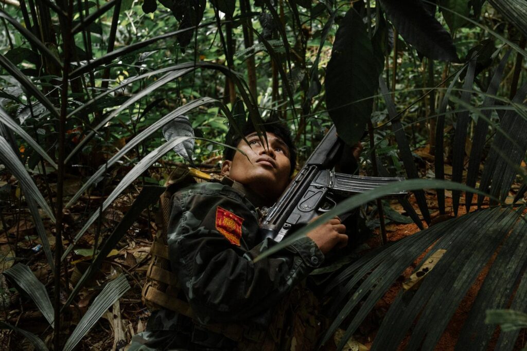 La révolution birmane est bien vivante. C’est ce que racontent les photographies de Robin Tutenges, parti à la rencontre de combattants de la résistance dans la région de Tenasserim, à l’extrême sud de la Birmanie, dans les forêts et les collines lovées le long de la frontière thaïlandaise.