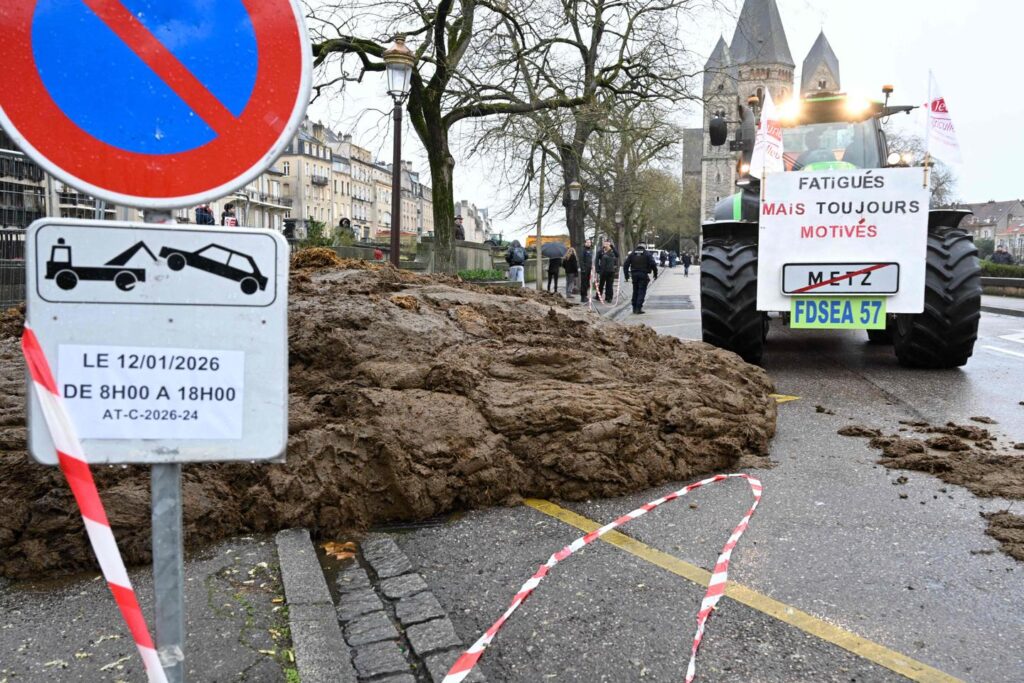 Lors d’une manifestation d’agriculteurs contre l’accord de libre-échange entre l’Union européenne et le Mercosur, à Hauconcourt (Moselle), le 12 janvier 2026.