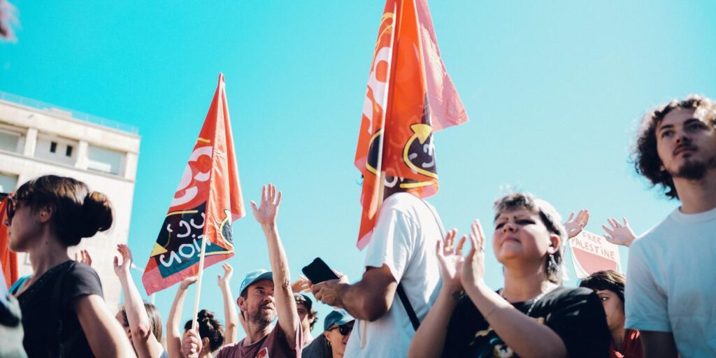 Le 10 septembre fut ici un succès : « on était 6 700 place de la révolution à 14 heures et à 17 h 30 on bloquait la rocade » selon Dilette, aide-soignante retraitée, « gilet jaune » historique, sweat Snoopie et pins de soutien aux soignants suspendus pendant le Covid-19 pour n’avoir pas voulu se vacciner — le petit groupe est aussi monté à Paris pour le convoi de la liberté en 2022. « C’était magnifique y’avait de tout » s’enthousiasme Hedi, 24 ans, un drapeau palestinien noué en cape, aide-ménagère chez 02, 18 ans lors des « gilets jaunes ».