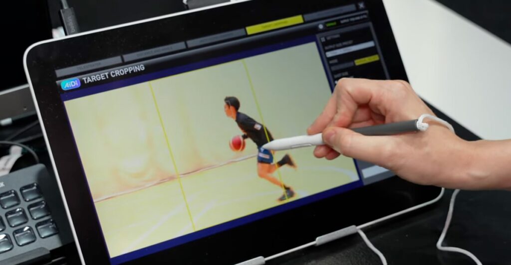 The viztrick AiDi system uses facial recognition to identify and track the movements of individual players and features a simplified interface that only requires operators to tap an onscreen athlete they want to follow. In Japan it’s been used by Nippon TV to add overlays with a player’s name and stats, but NBC Sports is planning to use it to deliver custom content on mobile devices in a vertical format.