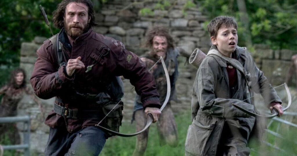 28 Years Later synopsis reads: « It’s been almost three decades since the rage virus escaped a biological weapons laboratory, and now, still in a ruthlessly enforced quarantine, some have found ways to exist amidst the infected. One such group of survivors lives on a small island connected to the mainland by a single, heavily-defended causeway.