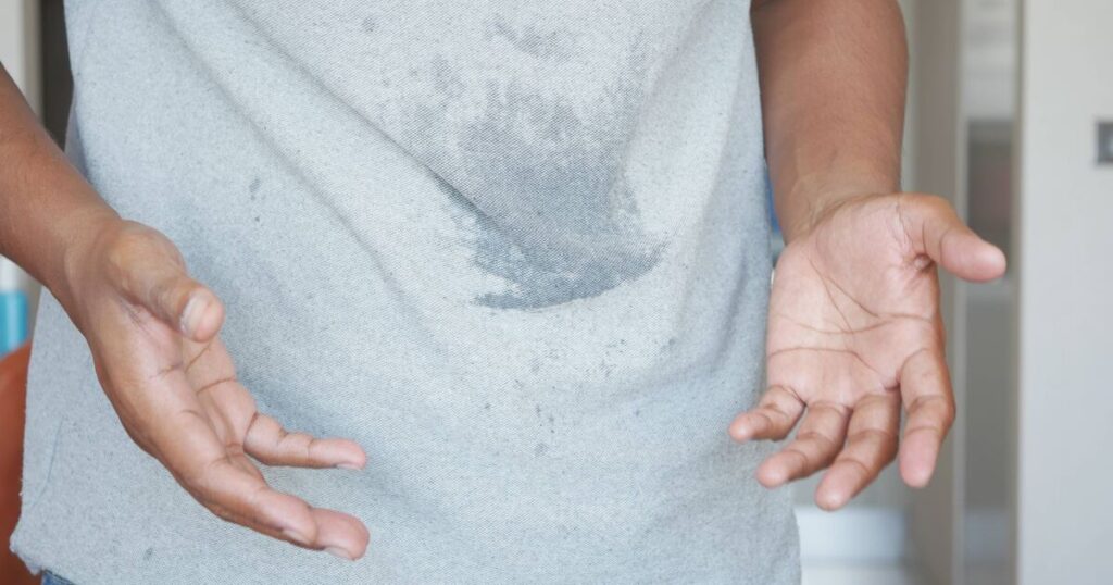 If the baby powder trick hasn’t done the job, or your oil stain is more stubborn, you can attempt a more thorough cleaning routine. Start with cornstarch or baby powder to absorb any excess oil. Let it sit for 30 minutes and then brush it off, before following these steps: