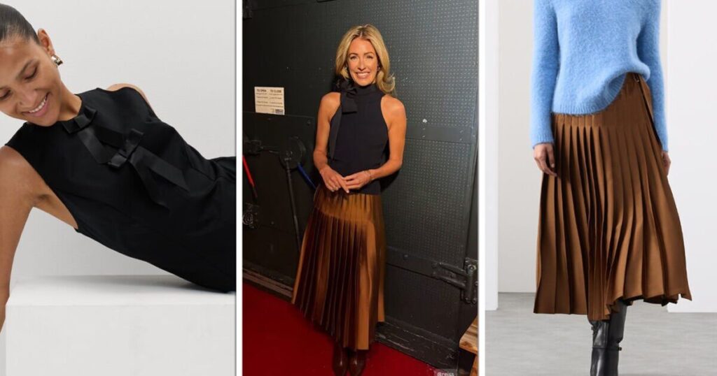 On Wednesday’s episode of This Morning, Cat wore a stunning satin skirt from M&S’ Autograph range that’s not only gorgeous but seriously in vogue right now. The flattering wrap silhouette pairs perfectly with this season’s kilt-inspired trend. And the golden amber shade fits in with the autumnal brown shades that seem to be everywhere this season.