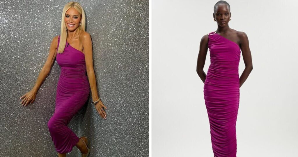 Tess Daly brought the glam to the Strictly Come Dancing stage this weekend in a stunning one-shoulder dress, and shoppers wanting to copy her look are in luck, as we’ve found the exact dress – and it’s in stock in all sizes.