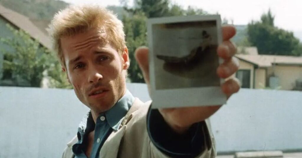 Twenty-five years since its release, Christopher Nolan’s Memento (2000) remains celebrated for its experimental storytelling. The film stars Guy Pearce as Leonard Shelby, a man suffering from short-term memory loss from a head injury after his wife’s murder. He is trying to find her killer, but since he forgets things almost immediately, he uses notes, Polaroid photos, and tattoos on his body to remember important clues. The twist is that the story is told backwards, so events are seen in reverse order. This puts the viewer in Leonard’s shoes, making the mystery feel confusing and suspenseful, just like he experiences it.