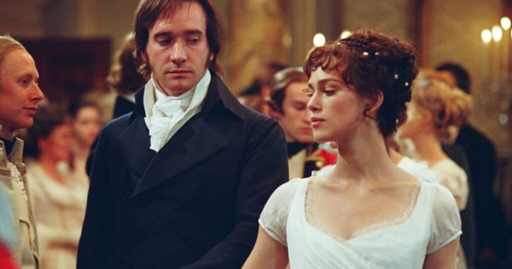 Pride and Prejudice is a period romance film directed by Joe Wright in his feature directorial debut. It is based on Jane Austen’s 1813 novel of the same name. The film features five sisters from an English family of landed gentry as they deal with issues of marriage, morality, and misconceptions. Keira Knightley stars as Elizabeth Bennet, while Matthew Macfadyen plays Mr Darcy, who falls in love with her. The film’s synopsis reads: « Elizabeth Bennett is a strong-willed yet sensible young woman. At a local ball, she encounters a wealthy young man, Mr Fitzwilliam Darcy, who is arrogant, and they develop an unusual relationship. »