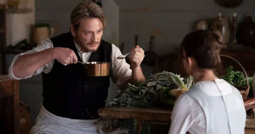 Their profound, unspoken love is conveyed through shared culinary artistry, but when Eugénie falls ill and refuses marriage, Dodin begins cooking for her, reversing their roles. The film stars Galatéa Bellugi as Violette, Bonnie Chagneau-Ravoire as Pauline, Benoît Magimel as Dodin, and Juliette Binoche as Eugénie.