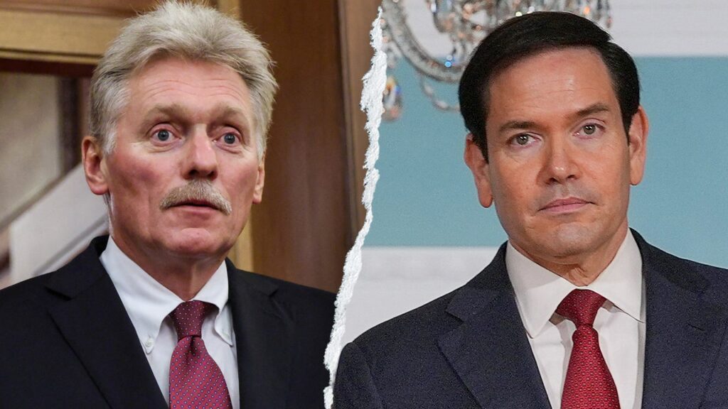 Kremlin spokesman Dmitry Peskov, left, and Secretary of State Marco Rubio. (Maxim Shemetov/Reuters; Ken Cedeno/Reuters)