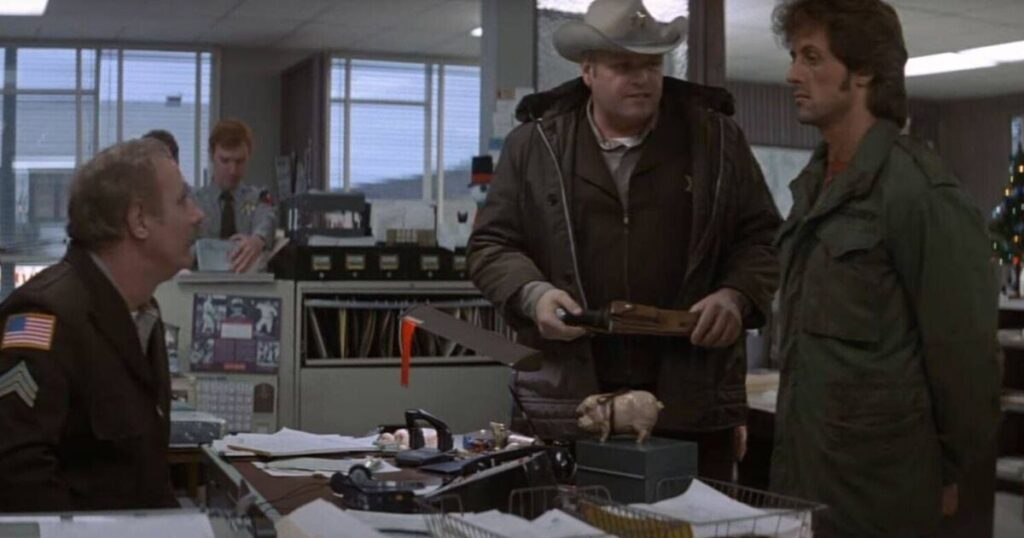 This triggers flashbacks to his traumatic experiences in the Vietnam War and as a prisoner of war, unleashing Rambo’s wrath on those attempting to detain him.